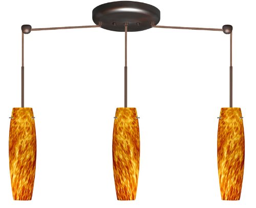 #Light Bulb:(3)40w T4 G9 120v Halogen, Glass:Amber Cloud, Cage:No Cage, Finish:Bronze This appealing three light linear pendant offers a versatile solution for decorative lighting. Handcrafted European glass Includes two stem hooks 10' Clear-coated SVT cords Suitable for sloped ceilings Dimmable with standard incandescent dimmer Note: Halogen bulb(s) are included; incandescent bulb(s) are not.