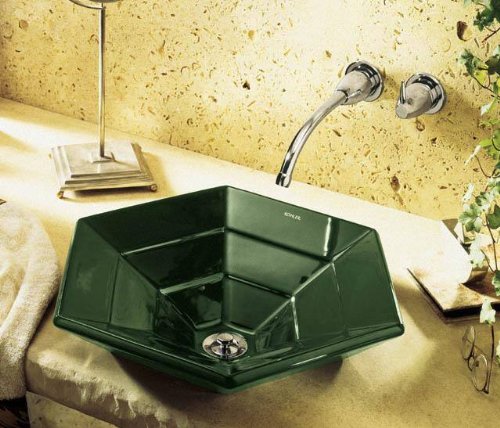 Vessels Hex Strata Bath Sinks Above Counter: Copper 19-5/8" x 17-1/8" Vitreous China Hexagonal Shaped Lavatory For Above Counter Installation Sculpted Basin ADA Compliant When Lavatory Is Mounted In Countertop With Top Rim Of Lavatory No Higher Than 34" Above The Finished Floor Recommended Accessories: K-9018 (P-Trap), K-7114, K-7124-K-7107, or K-7108 (Drain) Recommended Facuet Trim and Valve: K-307-K with K-T196, K-T197, K-T198, K-T199 (Faucet Trim) OR K-410-K With K-T945 or K-T14419 (Faucet Trim)