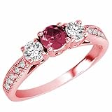 Looking for 18K Rose Gold Round 3 Stone Diamond and Pink Tourmaline Ring With Milgrain Pave Set Shank (0.95 ctw Great Deals, Online shopping, 18K Rose Gold Round 3 Stone Diamond and Pink Tourmaline Ring With Milgrain Pave Set Shank (0.95 ctw Read Product Review, Features, Specs, Description, Check Prices Update & More satisfactory for this item reviews! 18K Rose Gold Round 3 Stone Diamond and Pink Tourmaline Ring With Milgrain Pave Set Shank (0.95 ctw This dazzling sparkling timeless ring is classic and can be used as an engagement ring, anniversary ring, bridal ring, promise ring, proposal ring, fashion ring, wedding ring, cocktail ring and also to represent eternal love between you and that special someone. This 18K rose gold diamond ring is prong set with 2 round diamonds and 1 round Pink Tourmaline gemstone. There are also 10 sparkly diamonds on the shank of this ring (5 on each side). The total carat weight of all the stones are approximately 0.95 carats. The diamonds are H-I color and SI-I2 clarity. The ring band measures approximately 1.80 mm wide and 1.0 mm thick.....