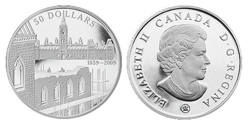 Canada 2009 $50 150th Anniversary of the Start of Construction of Parliament 5oz Silver Proof Coin