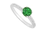 Emerald and Diamond Engagement Ring : 14K White Gold - 0.50 CT TGW Size 14.5