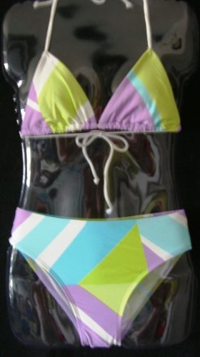 Girls Triangle Top Bikini Aqua/Diagonal Multi - 14/16 .I suggest you buy at